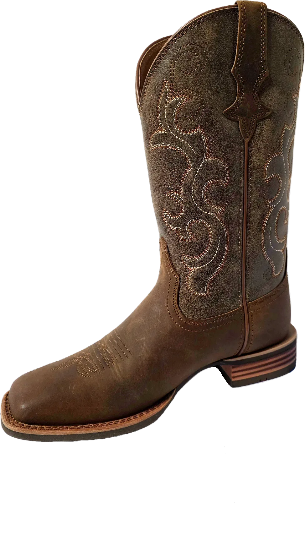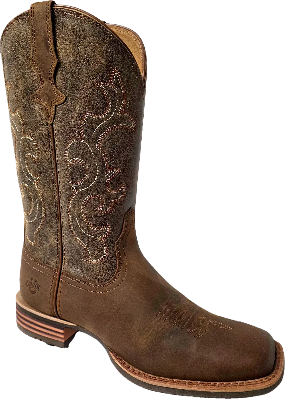 Cowgirl boots with intricate embroidery and rugged four-row stitch detailing, blending classic Western style with handcrafted durability for everyday comfort design by Canter Lope in Thamesville Ontario Canada